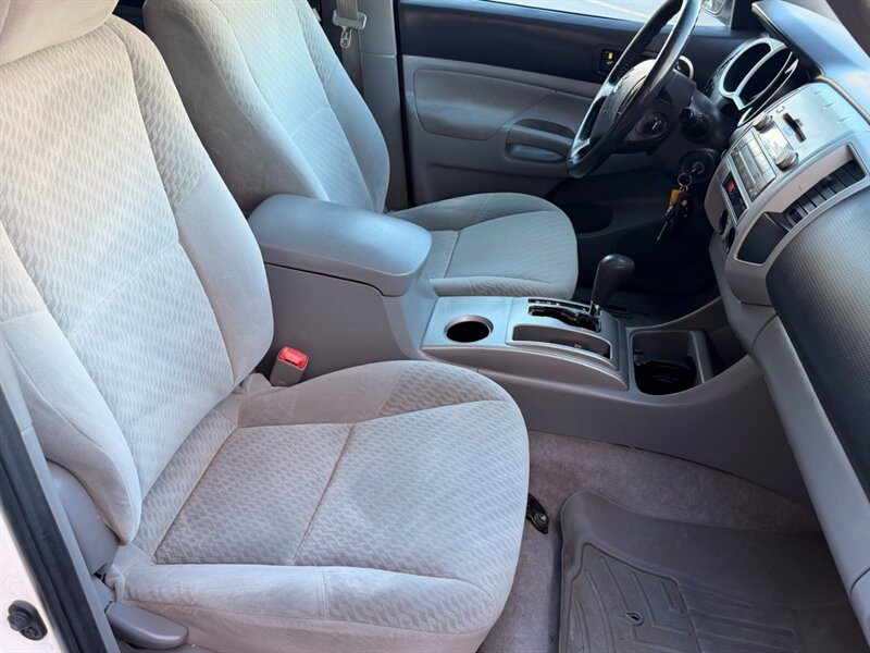 2009 Toyota Tacoma V6 — Super White outside, Graphite cloth inside, and powered by the burly 4.0L V6 (236 hp / 266 lb-ft). Factory-equipped with power windows and locks, remote keyless entry, air conditioning, tilt steering and cruise control, AM/FM/CD/MP3 stereo with auxiliary input, durable cloth seating, handy factory bed tie-downs, and essential safety gear like anti-lock brakes and front airbags. Below 136,000 miles (averaging under 8,000 miles/year), 16 MPG city / 20 MPG highway, and in excellent overall condition — dependable, practical, and a little bit sassy.