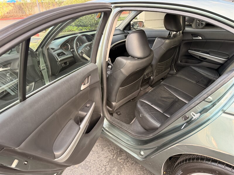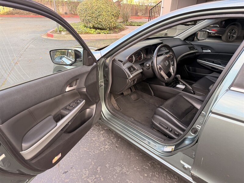 2010 Honda Accord EX-L V6 in Mystic Green Metallic with Black Alcantara/premium leather interior. Powered by a 3.5L V6 producing 271 hp and 254 lb-ft of torque, this EX-L comes with factory leather-trimmed heated front seats, power-adjustable driver’s seat (multi-way) with lumbar support and power passenger seat, and a one-touch power moonroof. Standard convenience and comfort features include dual-zone automatic climate control, keyless entry, power windows/locks/mirrors, steering-wheel audio and cruise controls, Bluetooth hands-free phone connectivity and a factory premium audio system with CD/aux inputs. Safety equipment includes ABS, traction and stability control, front-side and full-length curtain airbags, and tire pressure monitoring. Excellent overall condition, under 118,000 miles (averaging <7,000 miles/year), EPA-rated 19 MPG city / 29 MPG highway, and priced below Kelley Blue Book value.